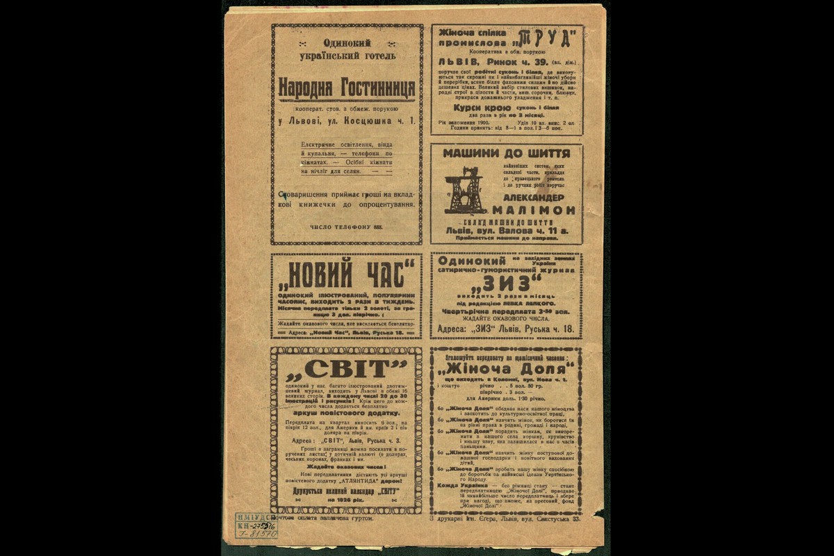 У м’якій обкладинці сіро-зеленого кольору зі стилізованими зображеннями вази з квітами, декорованого тареля й вишитого рушника; у верхньому лівому куті – назва видання. Налічує 12 сторінок із фотоілюстраціями. Випуск № 7 від грудня 1925 р. містить: статті з розповідями про участь жінок у громадському житті Чехословаччини, Румунії та Польщі; опис чотирьох видів темпераменту; добірку кулінарних рецептів, порад із ведення господарства та багато іншого.