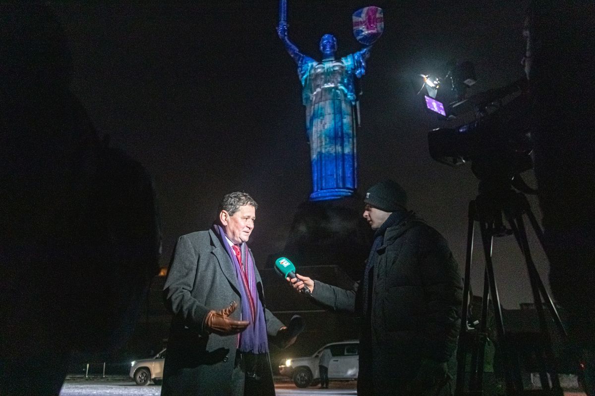 З цієї нагоди монумент «Батьківщина-мати» засяяв барвами прапорів Великої Британії та України, а також логотипом 100-річного партнерства двох держав.