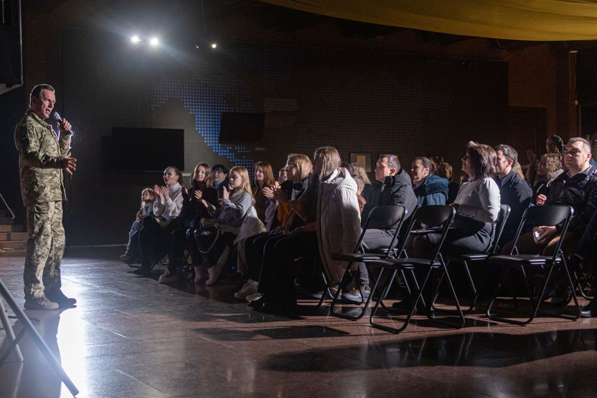 З вітальним словом до юних виконавців звернувся генеральний директор Музею війни Юрій Савчук. Він наголосив на тому, наскільки важливо в такі тяжкі часи й дорослим, і дітям не втрачати віру в майбутнє. Художній керівник оркестру полковник Ігор Биковський зауважив, що музиканти радо підтримали ідею Ірини Булгакової, начальника Управління культури Бахмутської міської ради, поєднати в одній композиції голоси дітей та професійну міць військових музикантів.