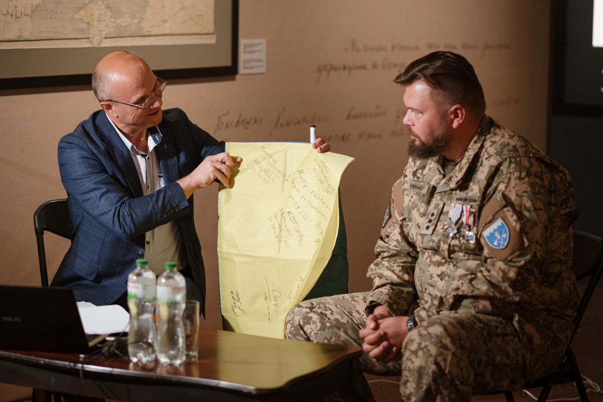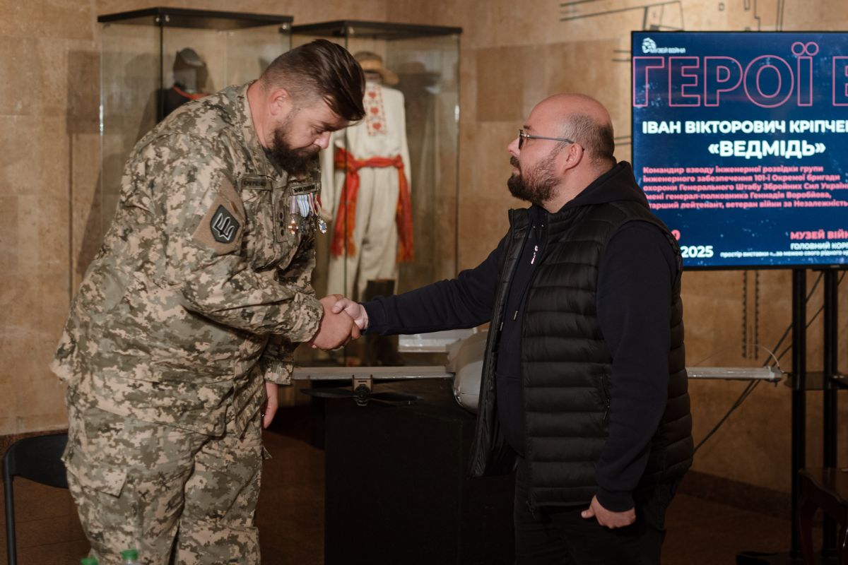 За традицією гість передав до фондозбірні Музею артефакти війни та власні речі, зокрема, особисті нарукавний і нагрудний знаки, погон, рукавиці, кобуру для фіксації зброї та нарукавний знак підрозділу «Ведмедики», бокорізи для знешкодження вибухових пристроїв, ліхтарик, ворожий БпЛА «Молния-2».