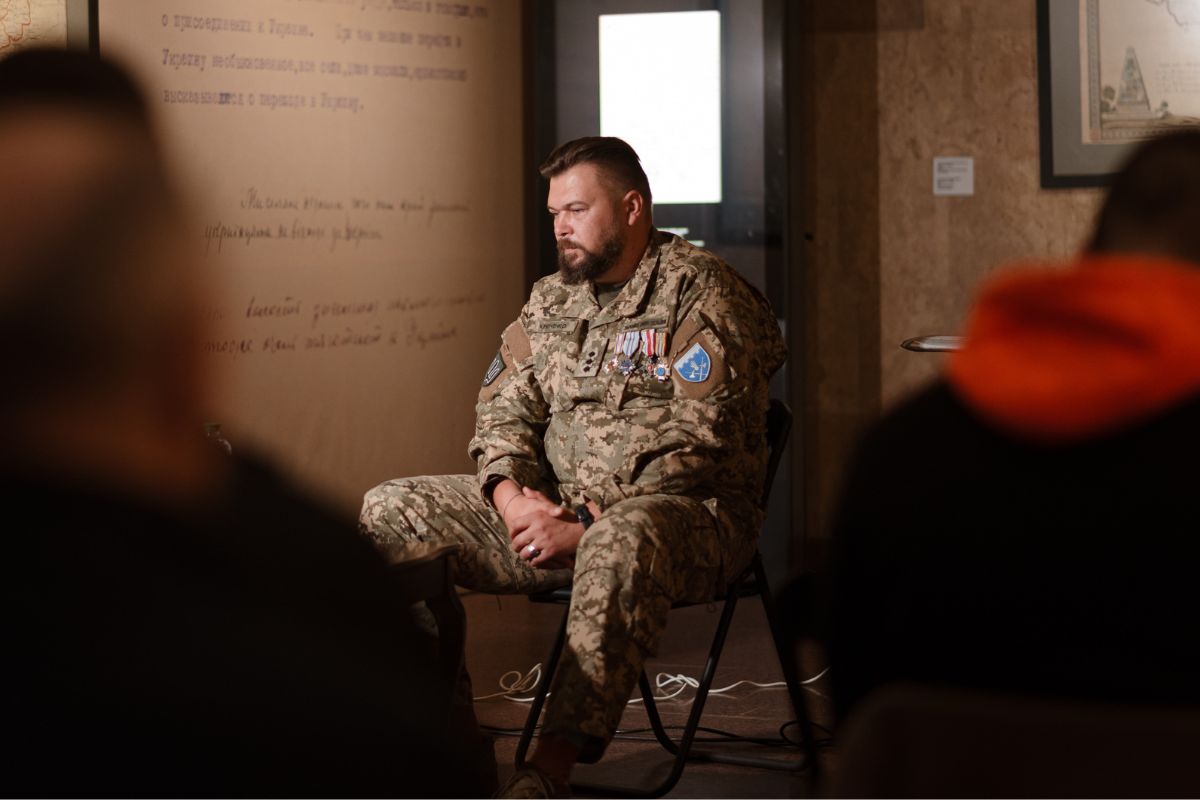 До Музею війни завітав командир взводу інженерної розвідки групи інженерного забезпечення 101 окремої бригади охорони Генерального штабу Збройних Сил України імені генерал-полковника Генадія Воробйова, ветеран Війни за Незалежність України, старший лейтенант Іван Кріпченко («Ведмідь»). Модерував зустріч керівник сектору дослідження мілітарної історії Сергій Сірий.