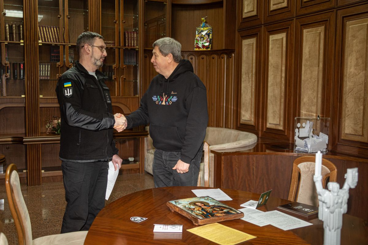 Від ГУР до фондів Музею надійшли нові артефакти. Експонати передали представник ГУР Євгеній Єрін і керівник Служби військового капеланства ГУР о. Костянтин Холодов.