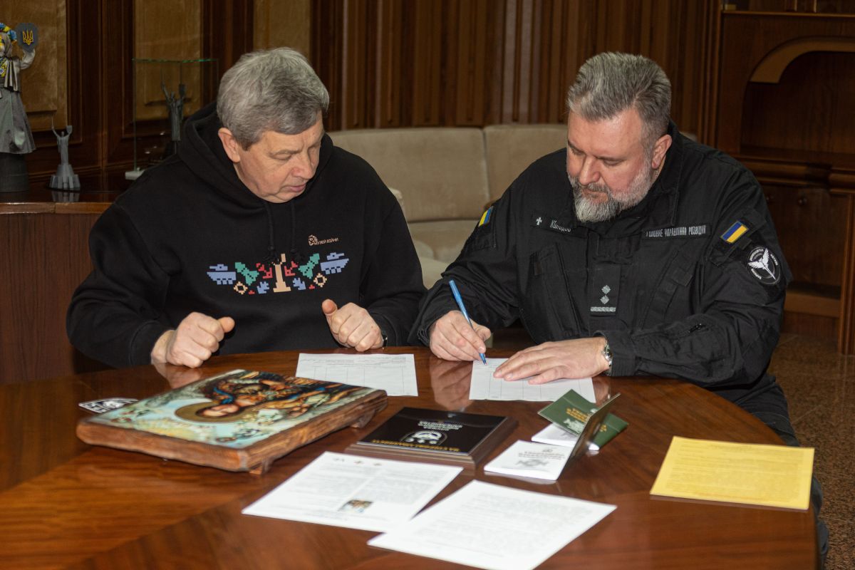 Серед переданого – копія офіційної ікони ГУР із зображенням покровителя розвідки Архангела Гавриїла й молитовник із молитвою розвідника.