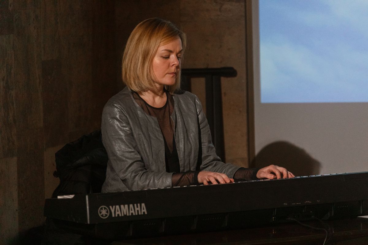 Під час читання поетами віршів музичну магію вечора створювала піаністка Наталія Воробйова – композиторка, яка вже майже 20 років викладає гру на фортепіано. Від початку широкомасштабного вторгнення пані Наталія почала проводити музичні терапії для переселенців, виступала з концертами в межах Stand with Ukraine.