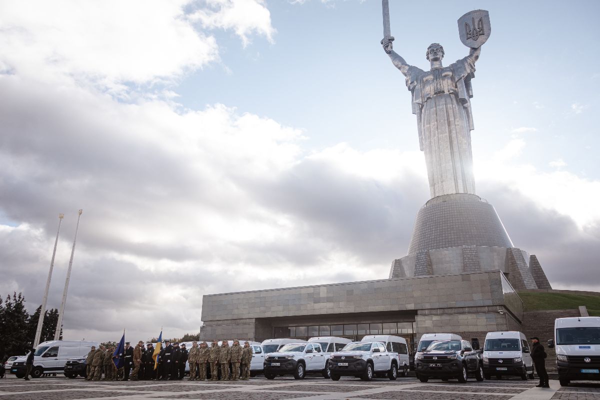 Представникам сектору безпеки та оборони України було передано 20 позашляховиків, придбаних за кошти Європейського Союзу в межах підтримки України. Захід відбувся на головній площі Музею війни біля підніжжя скульптури «Батьківщина-мати».