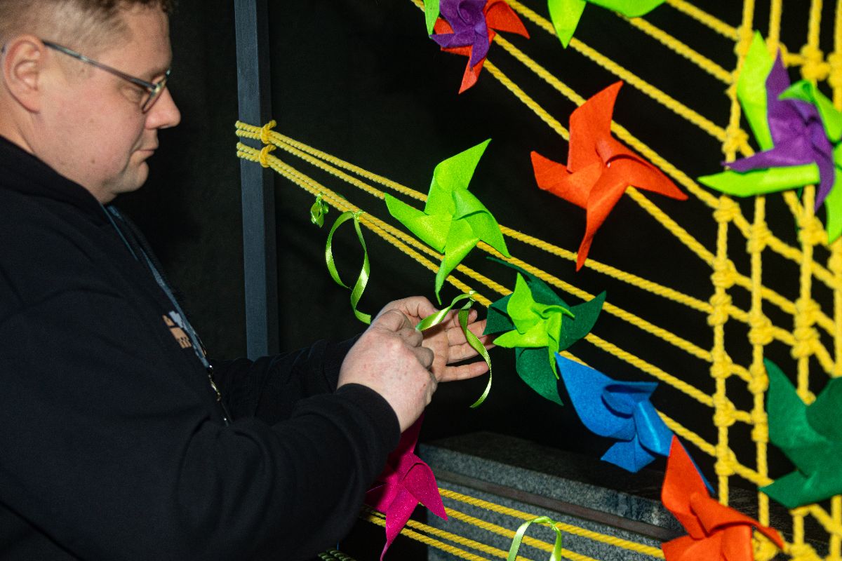 Особливий символізм виставці надає інсталяція художниці Оксани Цюпи – в’язане дерево, ліва й права частини якого уособлюють окуповані та вільні території України. Кожен відвідувач виставки має можливість прикрасити його «листям», зав’язавши зелені стрічки на знак віри у звільнення всіх українських земель.