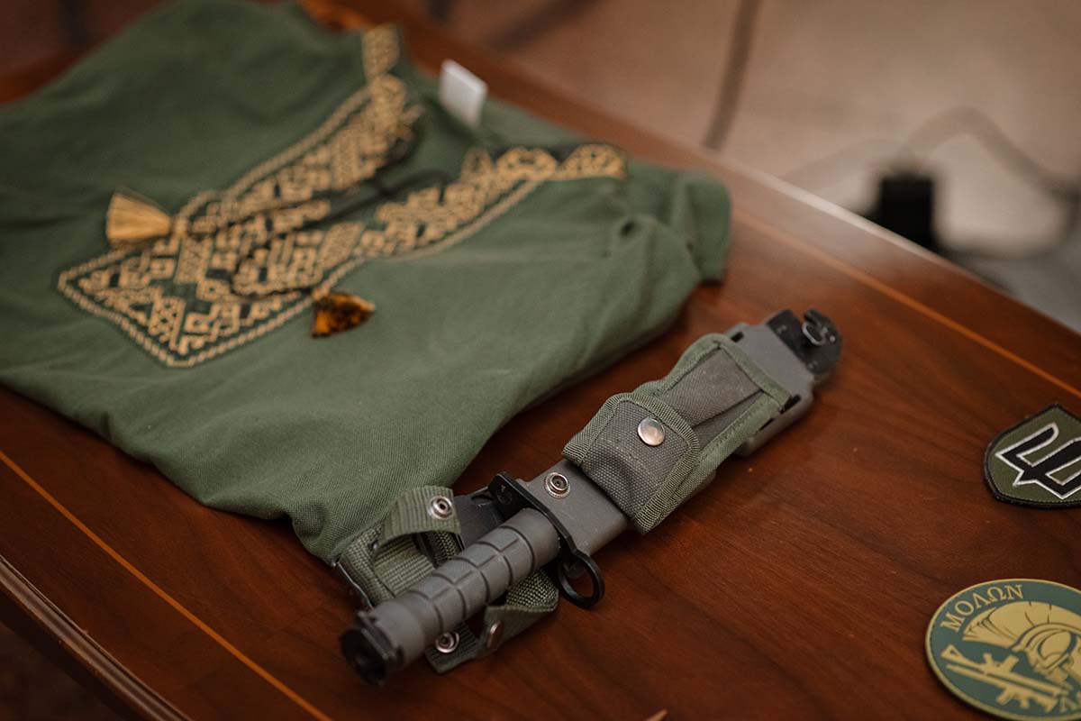Воїн також передав артефакти до колекції Музею. Серед експонатів – вишиванка-оберіг, трофейний російський багнет, гільзи та кулі з місць боїв, нарукавні знаки.