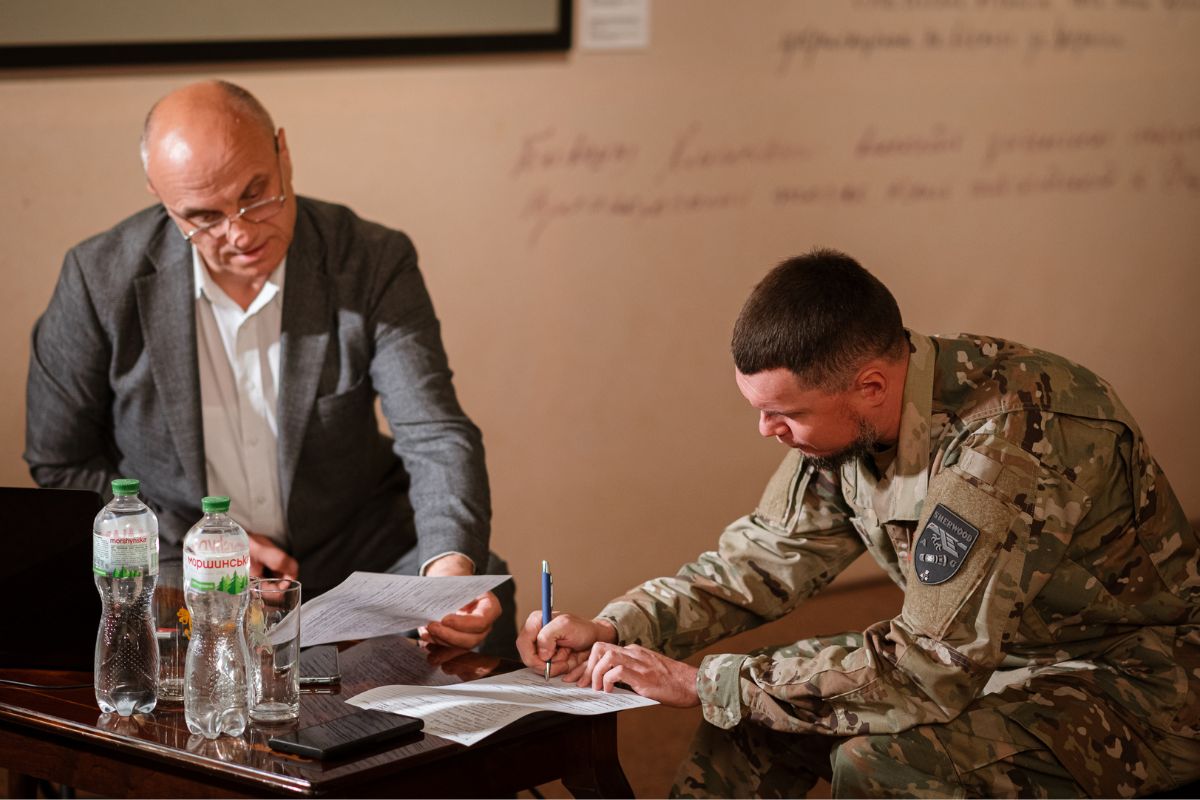 На запитання модератора зустрічі Сергія Сірого, які події під час війни переживати найважче і які запам’ятовуються найдужче, захисник відповів: «Найбільше болить, коли втрачаєш бойових побратимів. За час спільних випробувань і проходження бойового шляху ці люди стали найріднішими і їх утрата – невимовний біль».