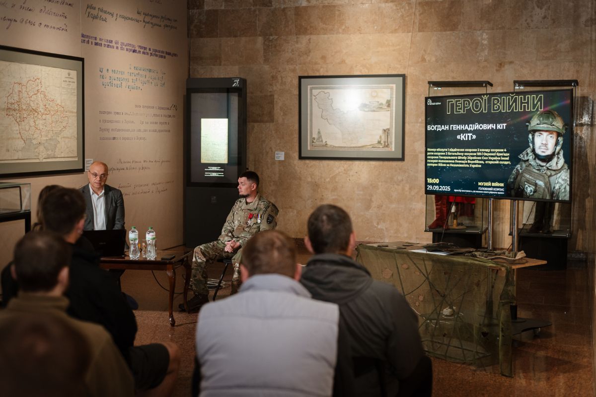 До Музею завітав учасник російсько-української війни старший солдат 101 ОБрО ГШ ЗСУ імені генерал-полковника Генадія Воробйова Богдан Кіт, щоб розповісти про свій бойовий шлях і передати артефакти до музейної колекції. Модерував захід завідувач сектору мілітарної історії Сергій Сірий.